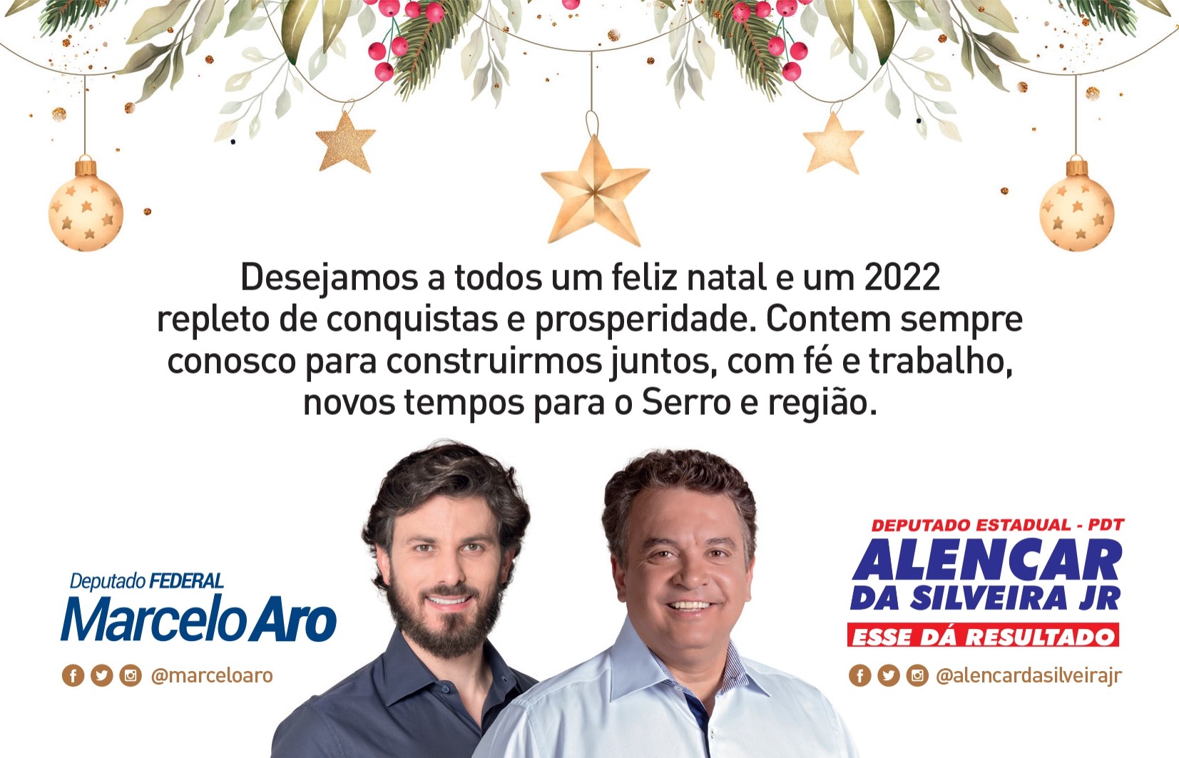 Feliz Natal: Deputado Federal Marcelo Aro e Deputado Estadual Alencar da Silveira Jr