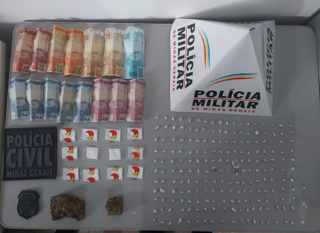 De imediato os polícias deram voz de prisão ao proprietário das drogas e ao realizarem a busca pessoal nele ainda encontraram R$ 285,00 (duzentos e oitenta e cinco reais) e um aparelho celular que também foram apreendidos junto com as drogas.