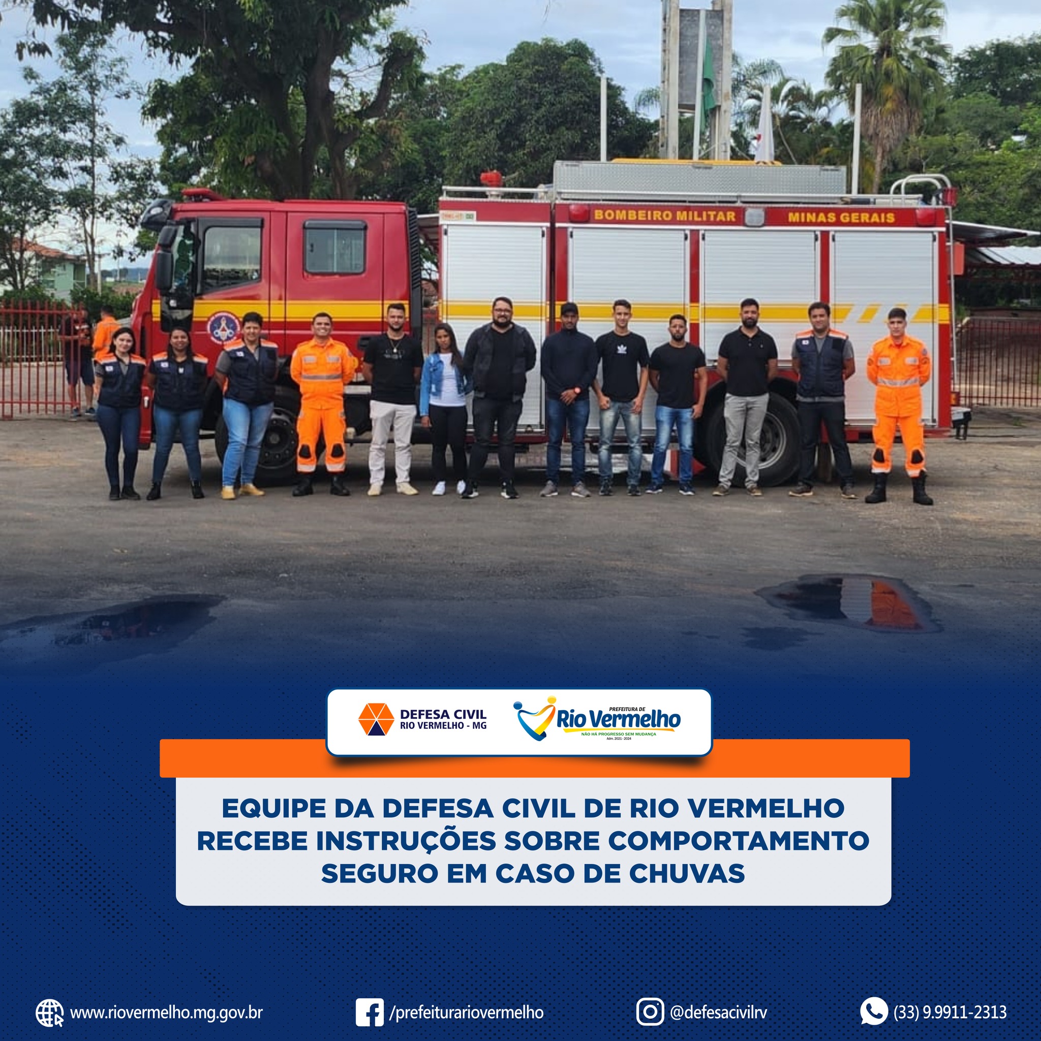 A Defesa Civil de Rio Vermelho participou, no último dia 16, no Posto Avançado do Corpo de Bombeiros, em Guanhães, de uma instrução ministrada pelos militares sobre comportamento seguro em caso de chuvas.