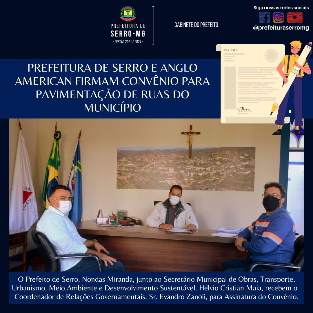 A Prefeitura Municipal de Serro e Anglo American firmaram assinaram convênio que visa a pavimentação de 18 ruas do Município de Serro, tanto na sede quanto em distritos e comunidades.
